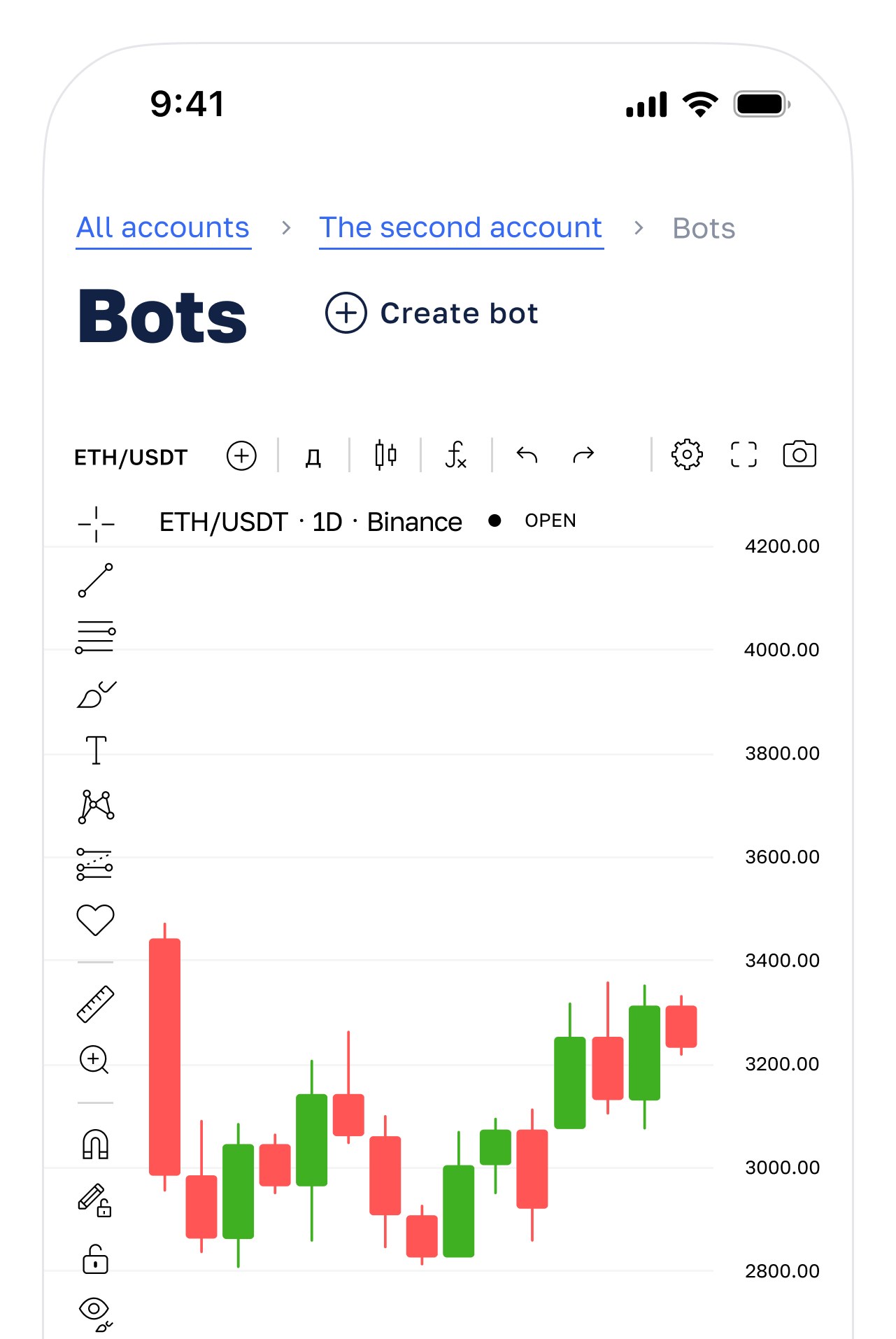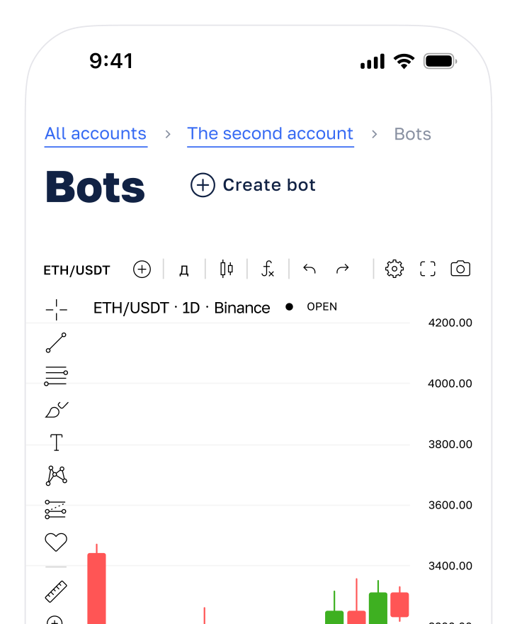Adjust and run bot in a few clicks. Copy-paste bots between accounts or exchanges in a simple way.