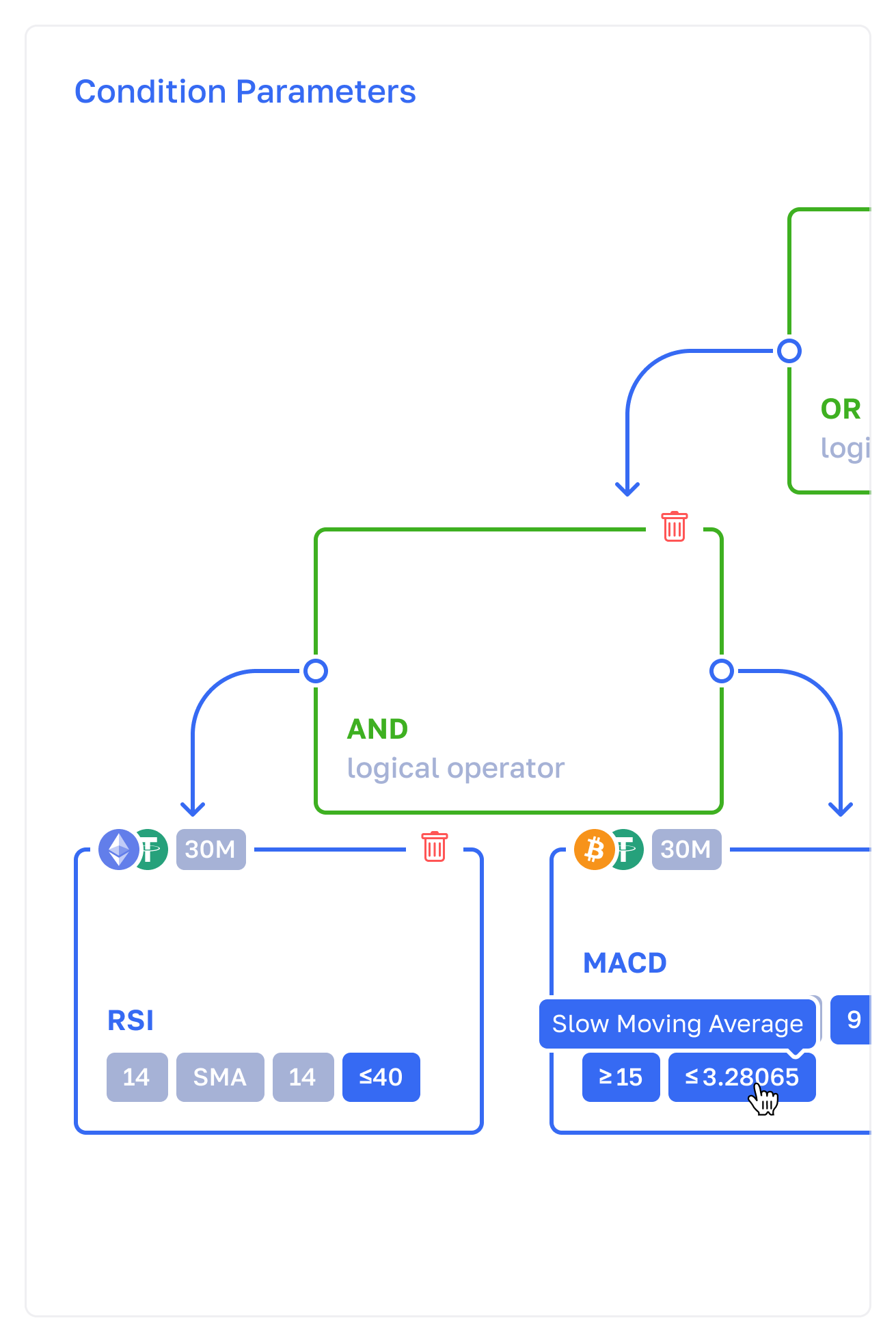 Configure logical sequences for complex conditions setups to monitor markets in your own way.